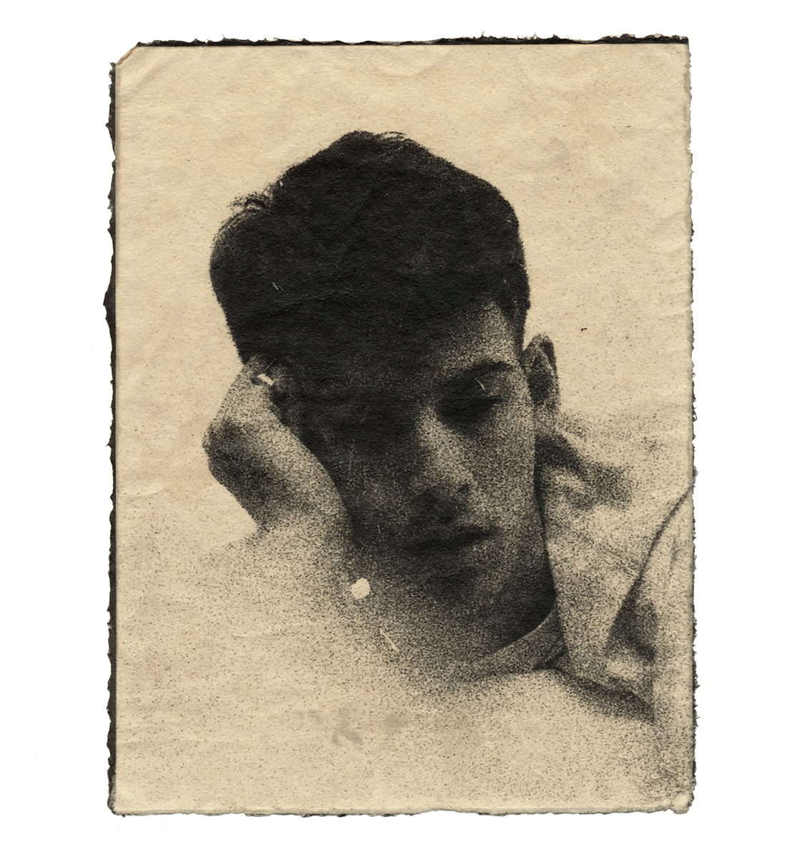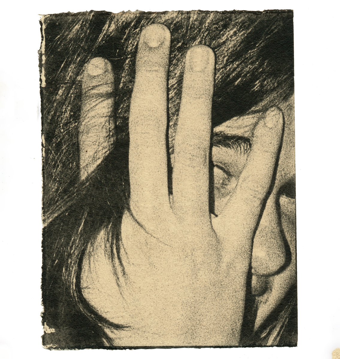 The series begins with a process of exploring my archive corresponding to my first years of photography. In this search and with a visceral and irrational attitude towards it, I tried to find a common echo. Through croppings and a new printing process, I ended up compiling what became for me a series of gestures; acts of love or desire, toward oneself or others, acts that respond to a kind of violence exerted from the outside.
